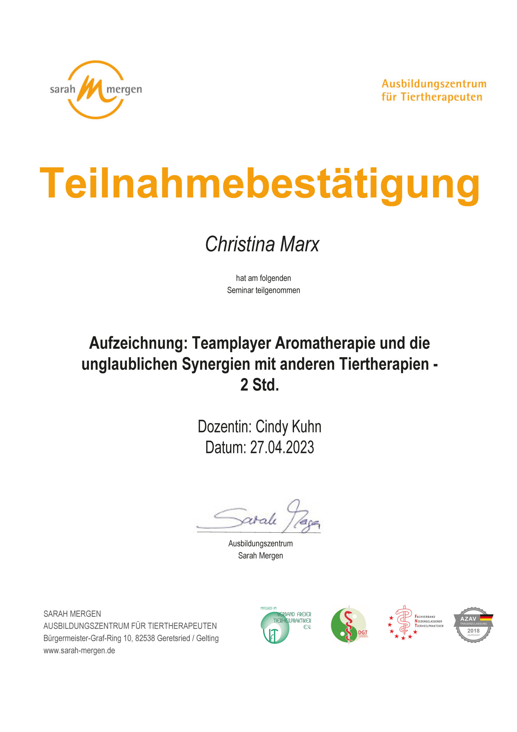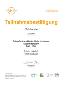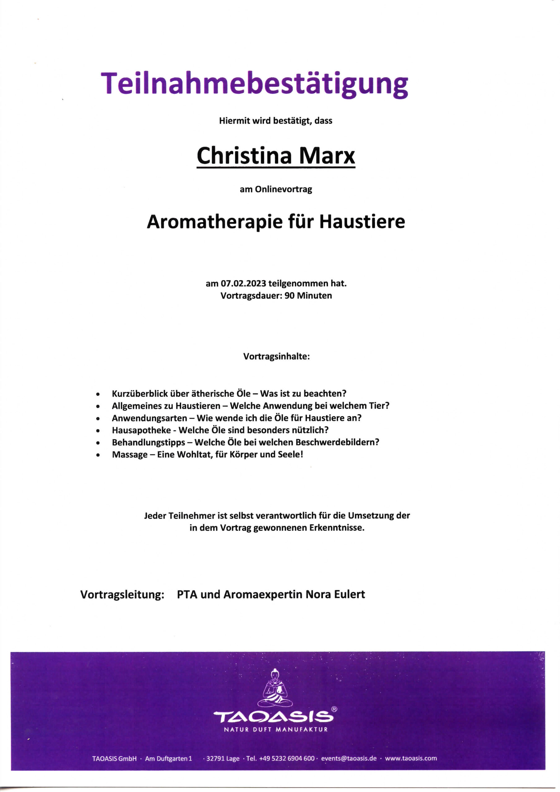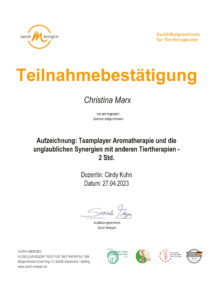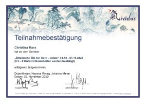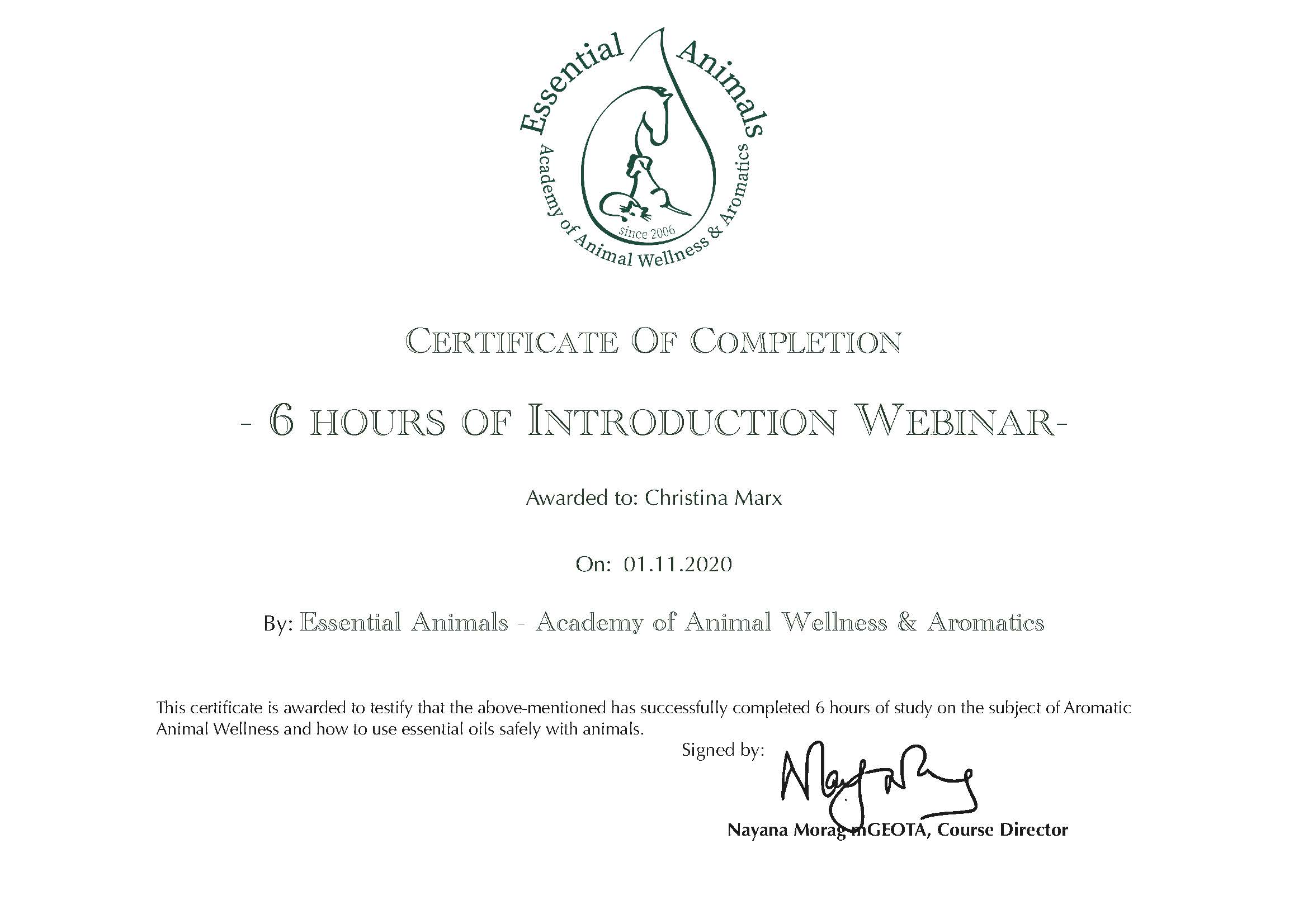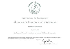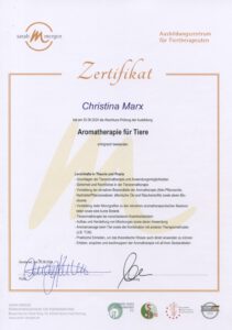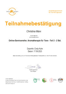 Ätherische Öle für Tiere/Zertifikat der Dozentin Nayana Morag