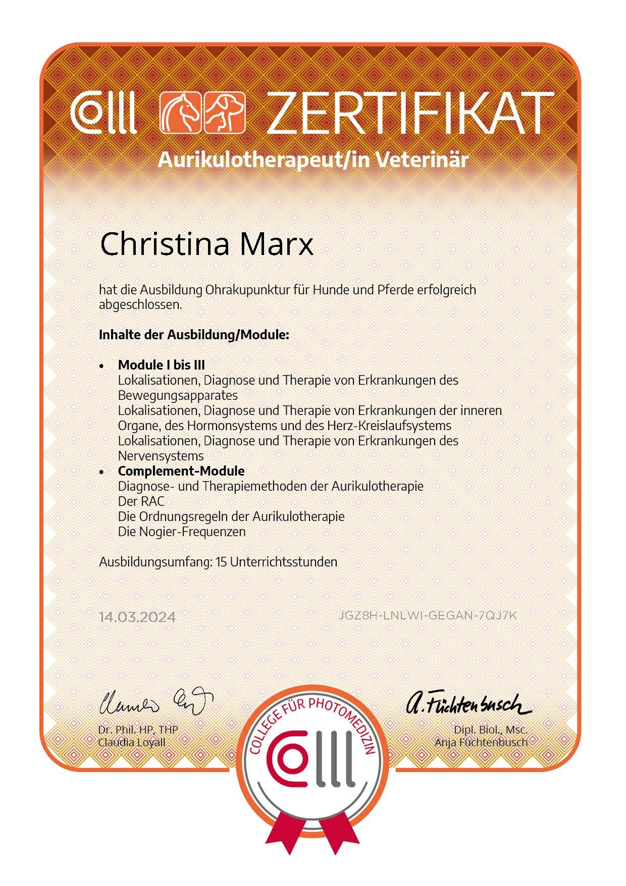 COLLL Aurikulotherapeut/in Veterinär