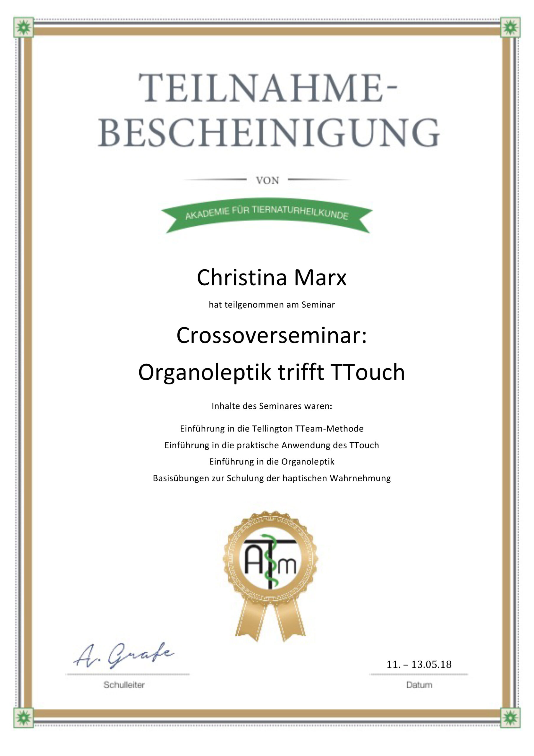 ATM/Organoleptik trifft TTouch mit Linda Tellington-Jones