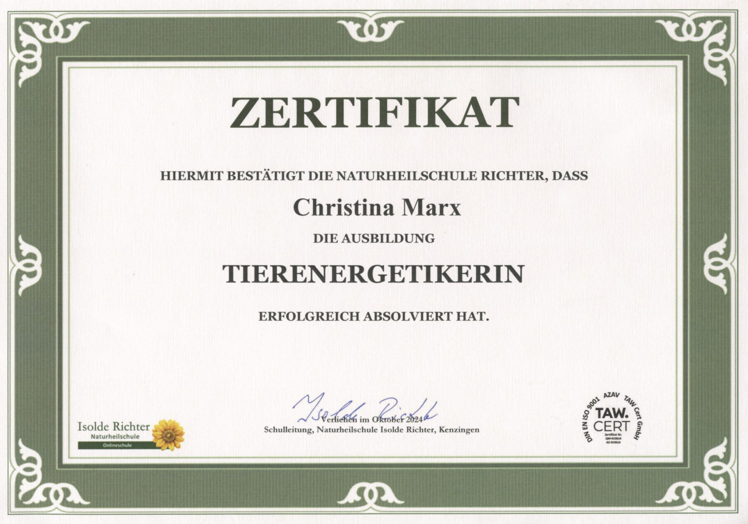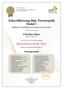 Zertifizierte Ausbildung zur Tierenergetikerin