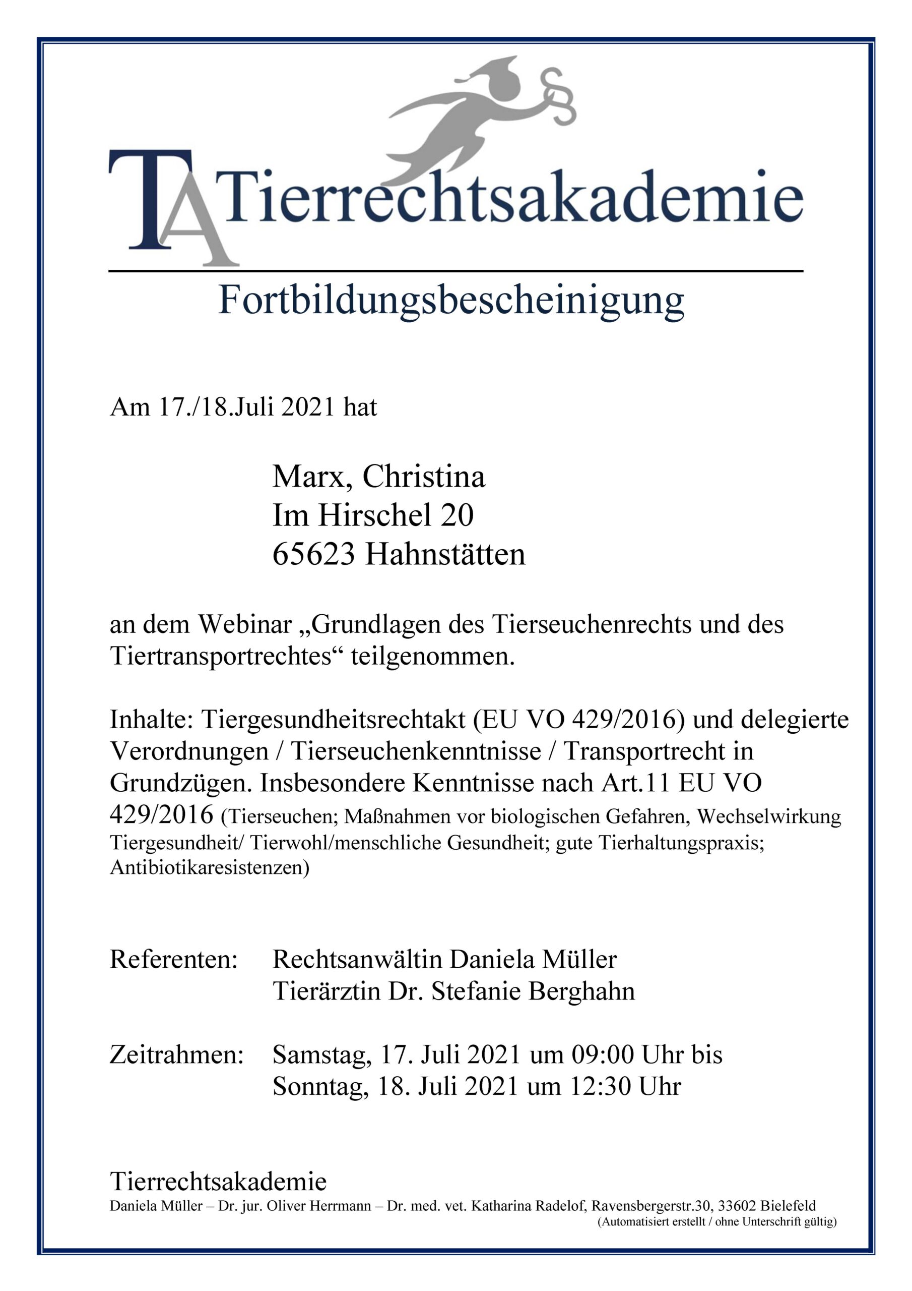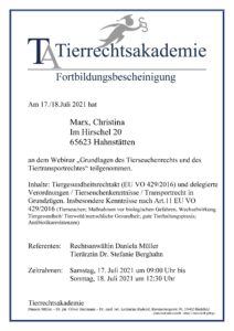 Tierrechtsakademie Daniela Müller/Grundlagen des Tierseuchenrechts und des Tiertransportrechtes