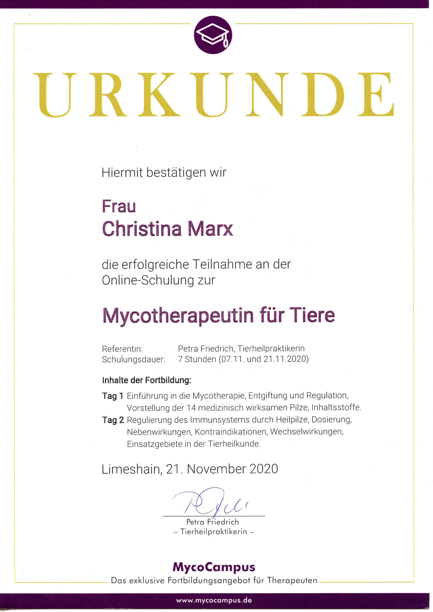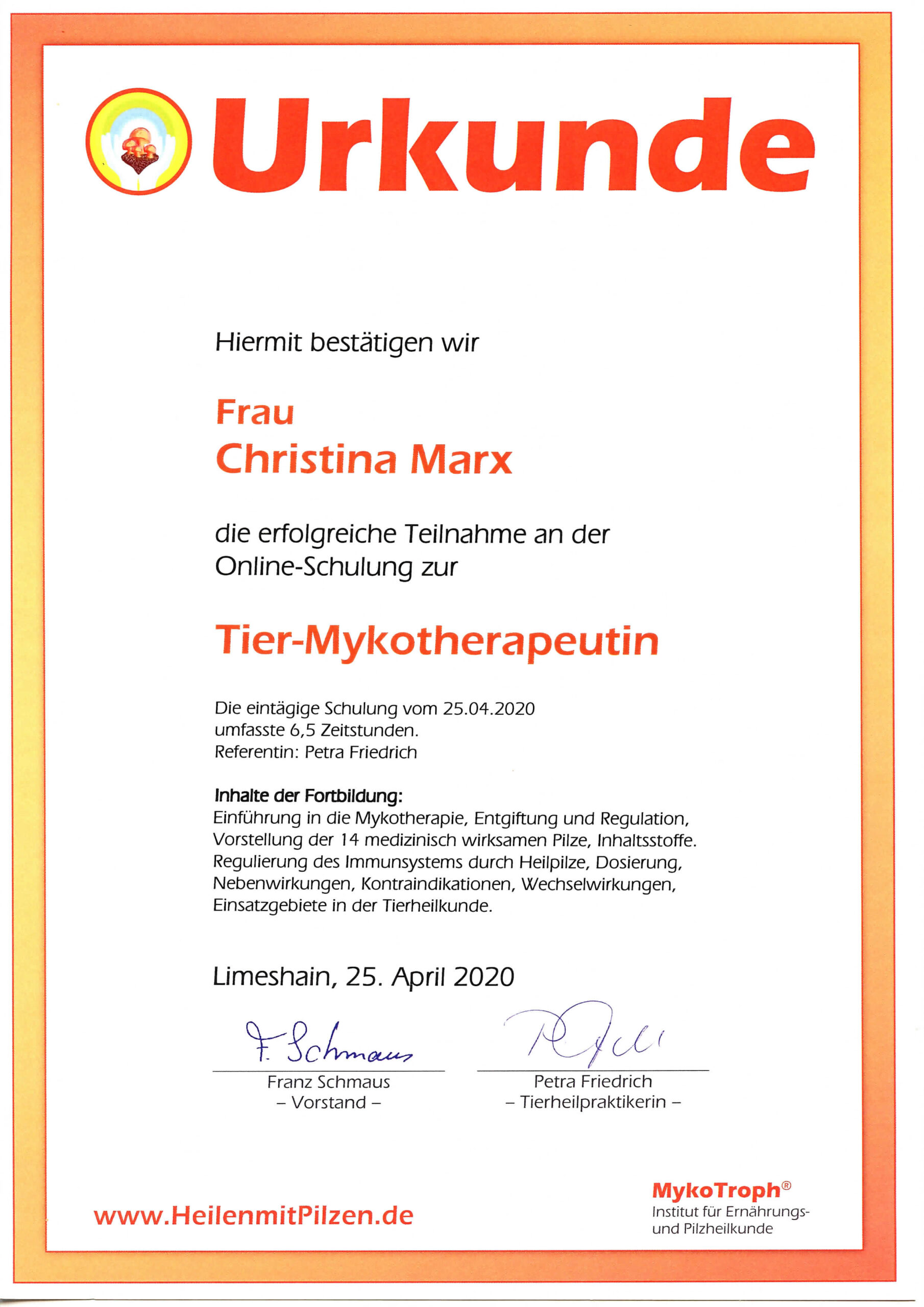 MycoCampus/Mykotherapeutin für Tiere